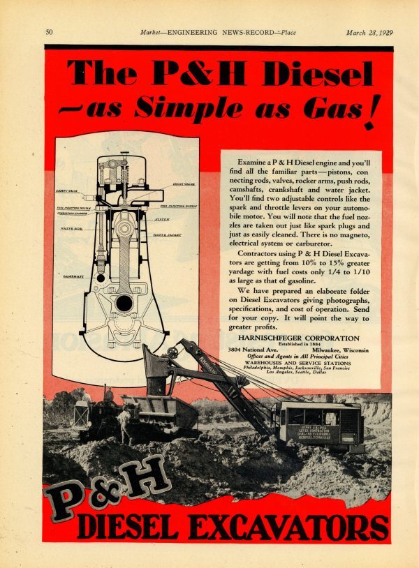 1929 P & H Model 700 Excavator Ad: Shovel, Crane, Dragline – Harnischfeger – Milwaukee, Wisconsin