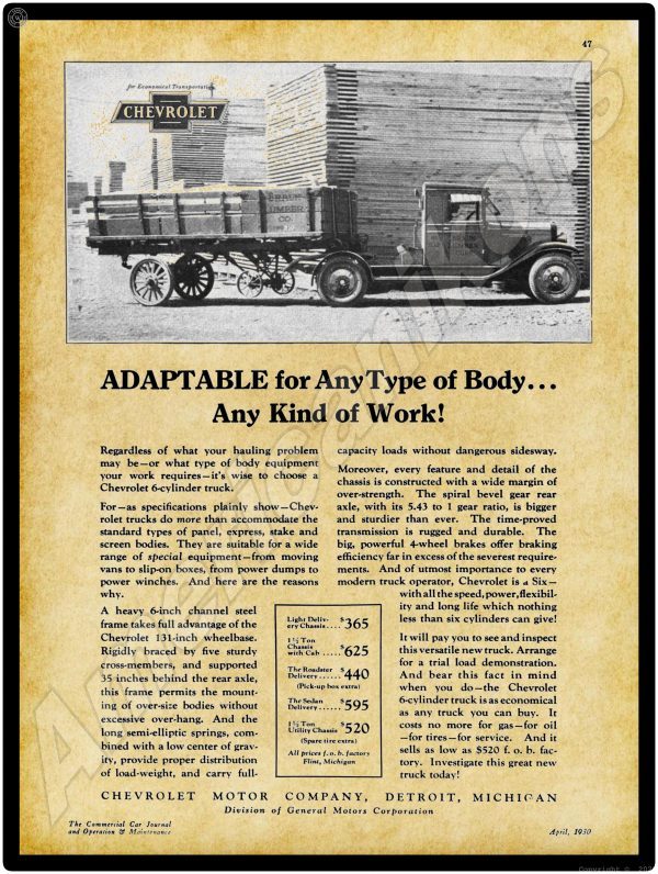 1930 Chevrolet Trucks Collectible Metal Sign: 6 Cylinder Model