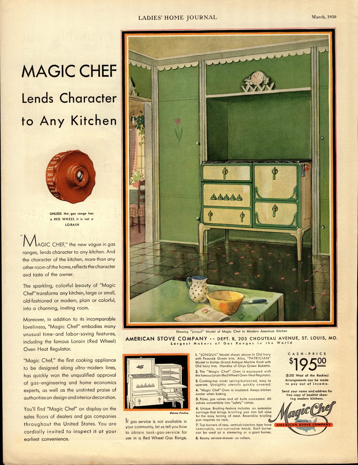 1930 Magic Chef Kitchen Stove Collectible Advertisement: Jonquil Model Featured