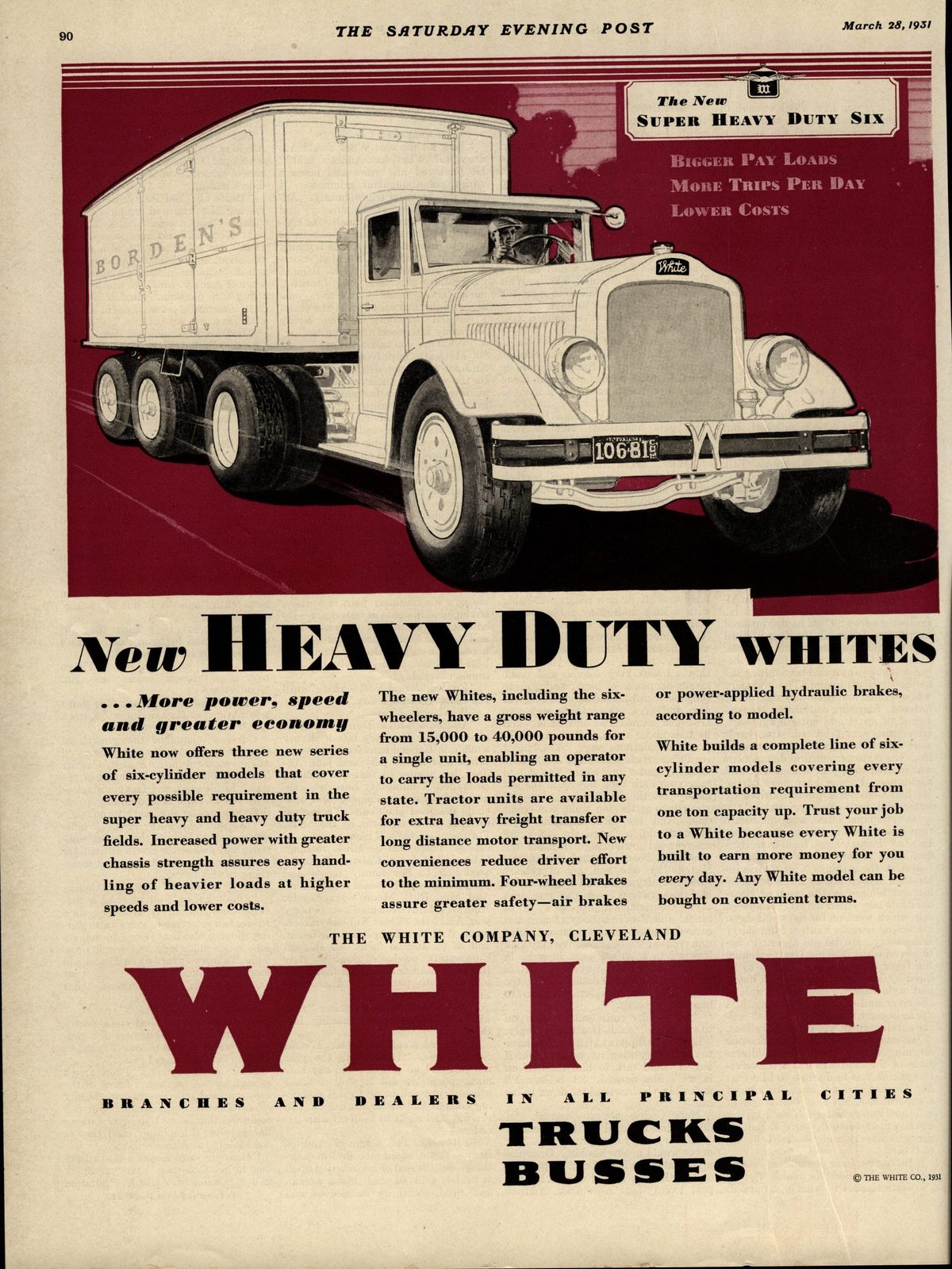 1931 White Trucks Borden Milk Delivery Truck Collectible Advertisement: Cleveland, Ohio