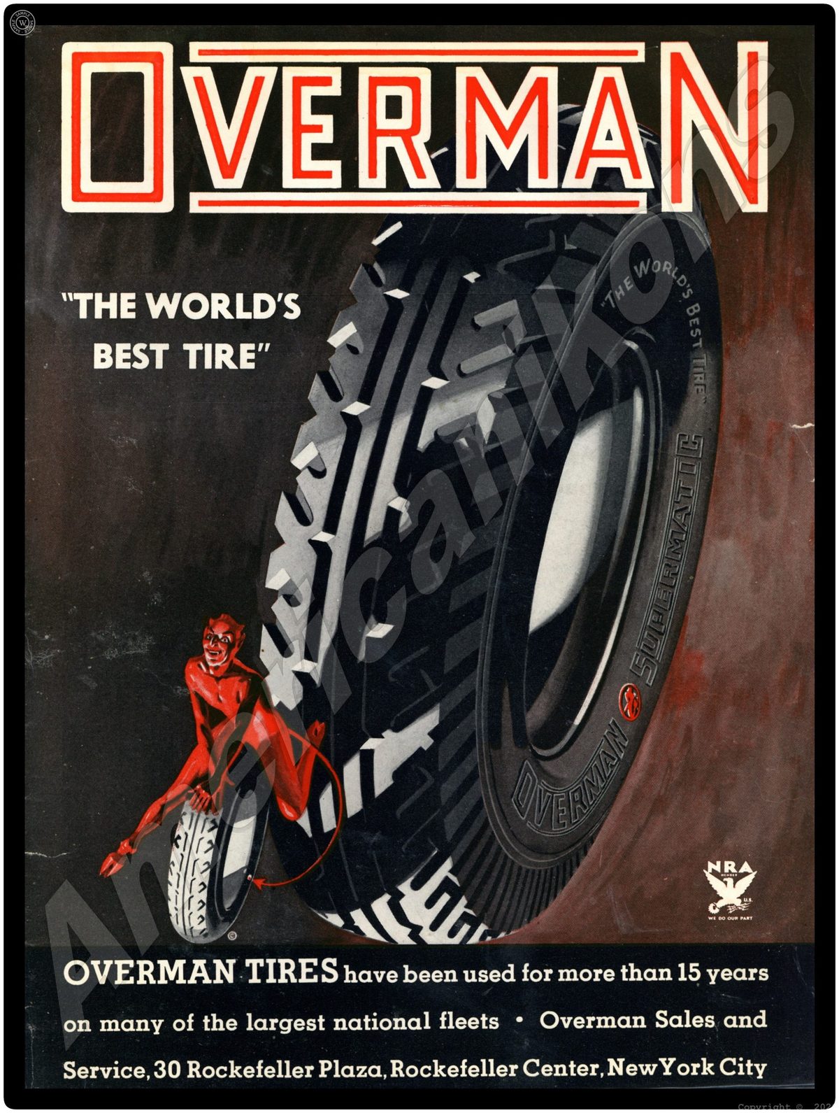 1934 Overman Tires Collectible Metal Sign: Rockefeller Center – New York City