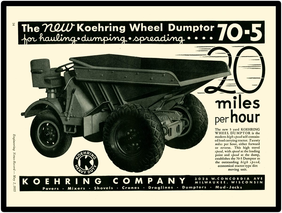 1935 Koehring Model 70-5 Dumptor Collectible New Metal Sign