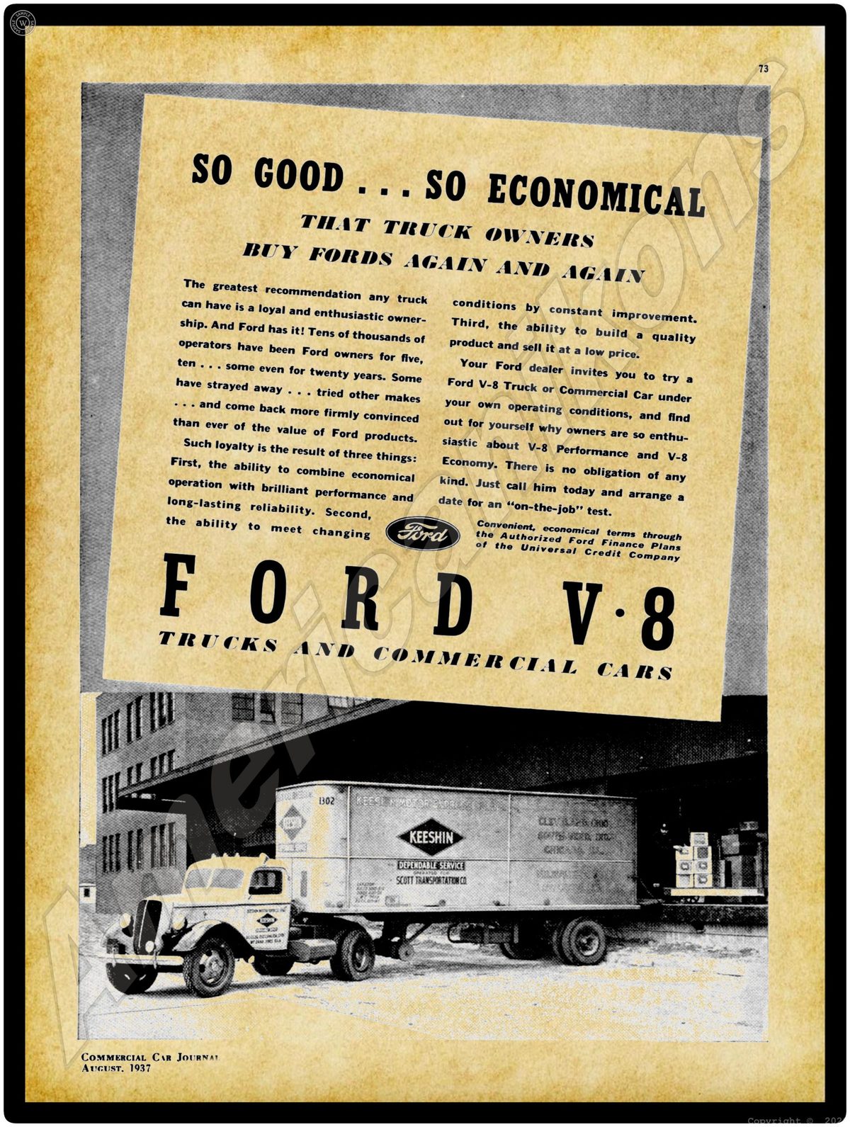 1937 Ford Trucks Collectible Metal Sign: Keeshin Transportation Tractor Trailer