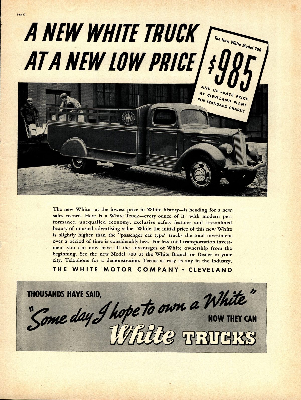 1937 White Super Power Trucks Model 700 Stakebed Delivery Collectible Advertisement: Cleveland, Ohio