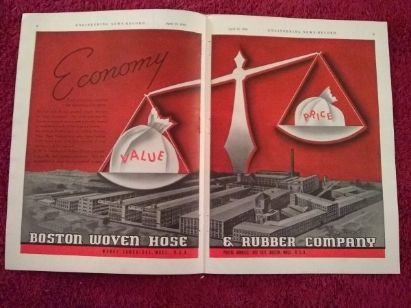 Vintage 1940 Boston Woven Hose & Rubber Company Ad, Advertisement 2 pg. Centerfold Cambridge