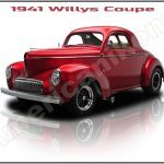 1941 Willys Coupe Collectible Metal Sign: Hot Rod Yellow!