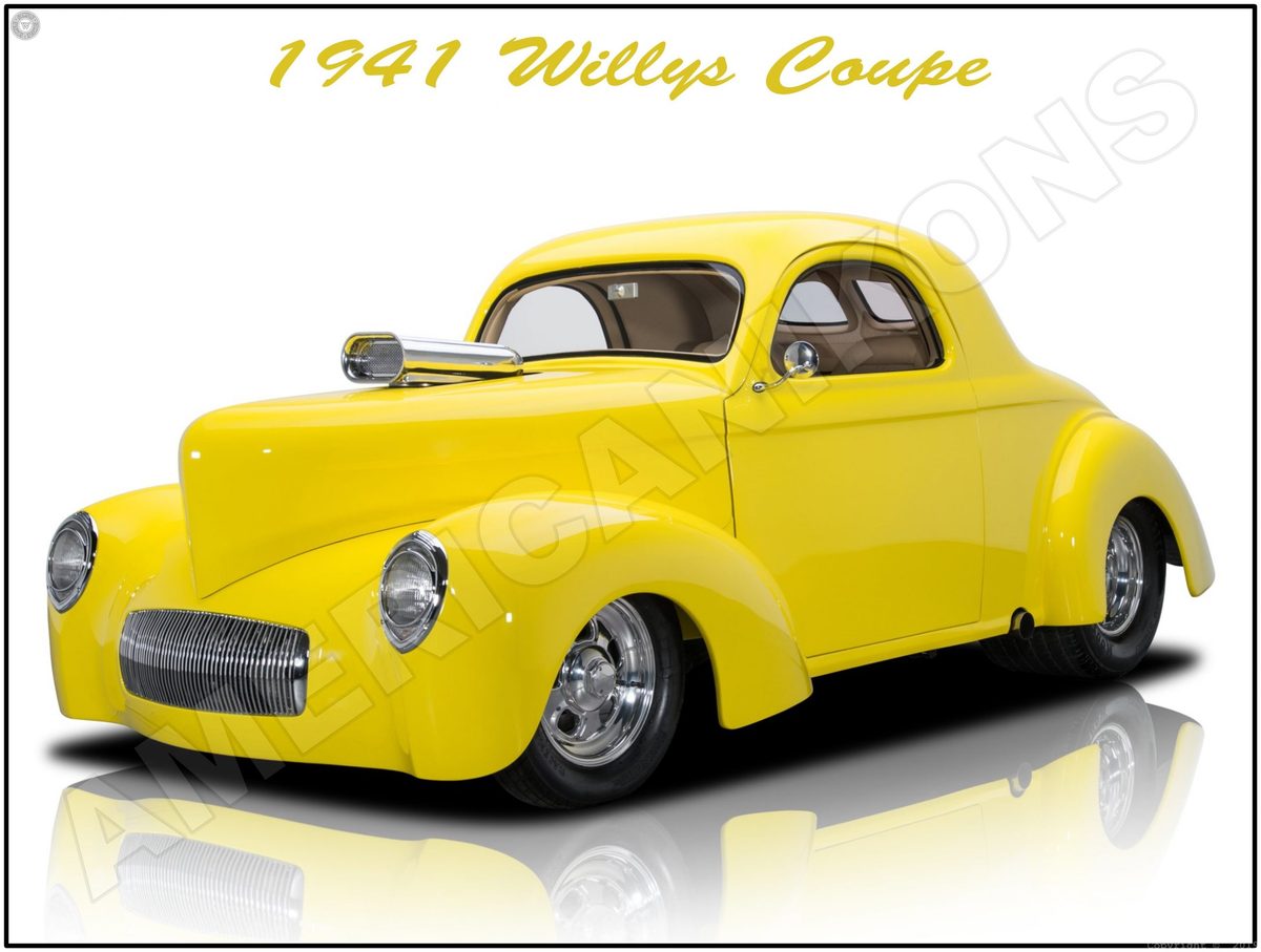 1941 Willys Coupe Yellow Hot Rod Collectible New Metal Sign