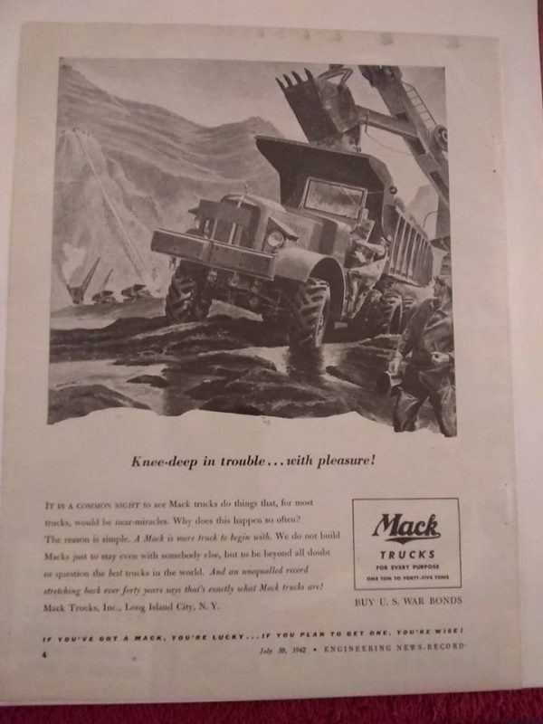 Vintage 1942 Mack Trucks Collectible Advertisement: Knee Deep in Trouble, With Pleasure