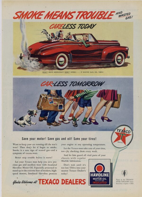 1942 Texaco Havoline Motor Oil Collectible Advertisement: Smoke Means Trouble!