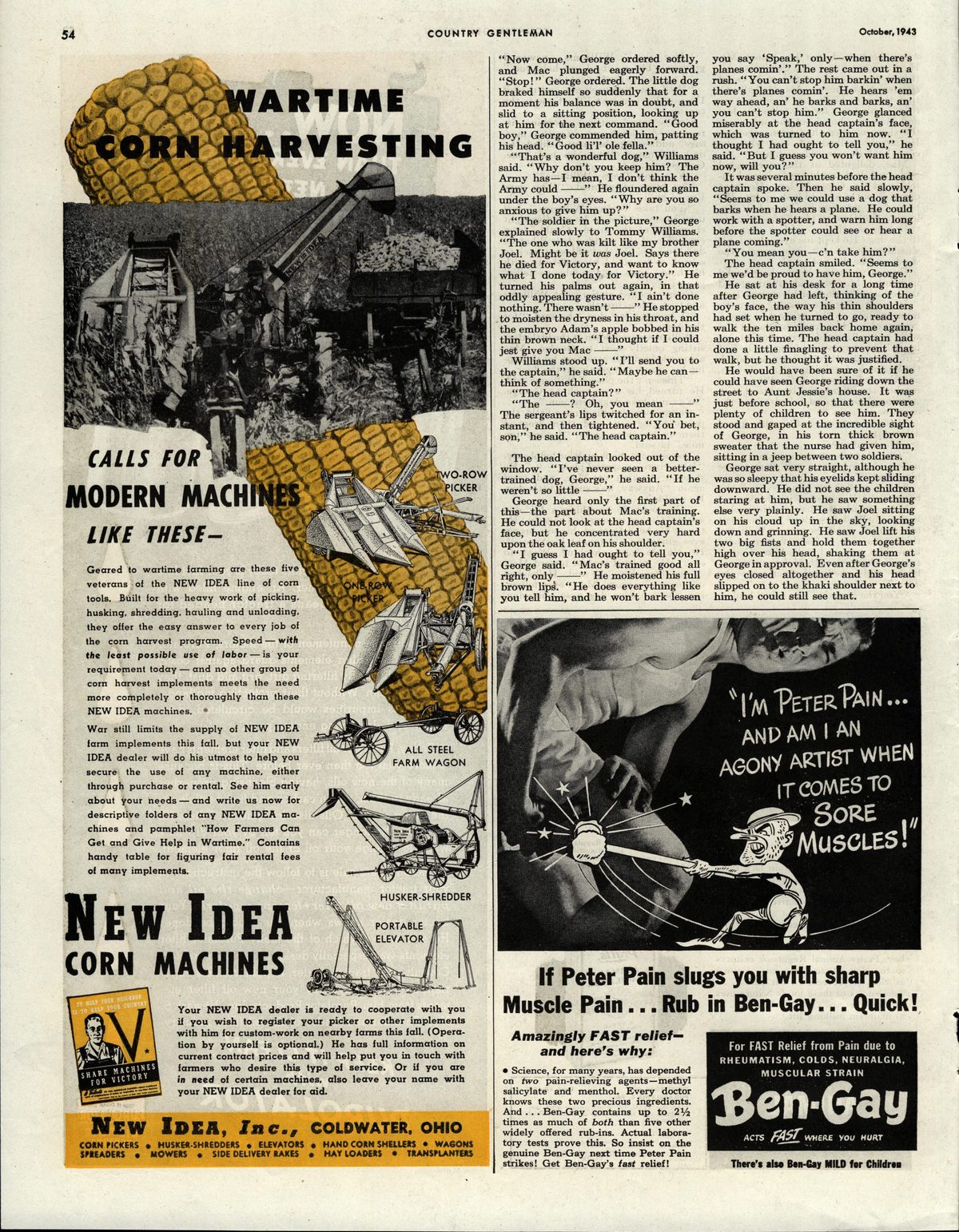 1943 New Idea Corn Machines Collectible New Advertisement: Coldwater, Ohio