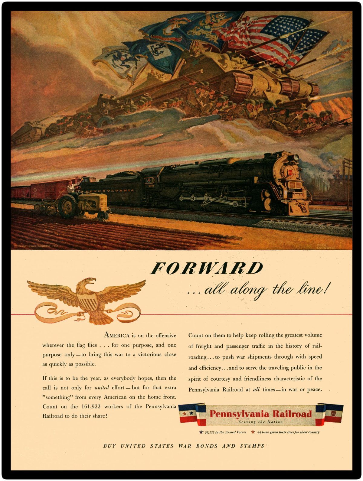 1944 Pennsylvania Railroad Collectible New Metal Sign: World War Two Theme