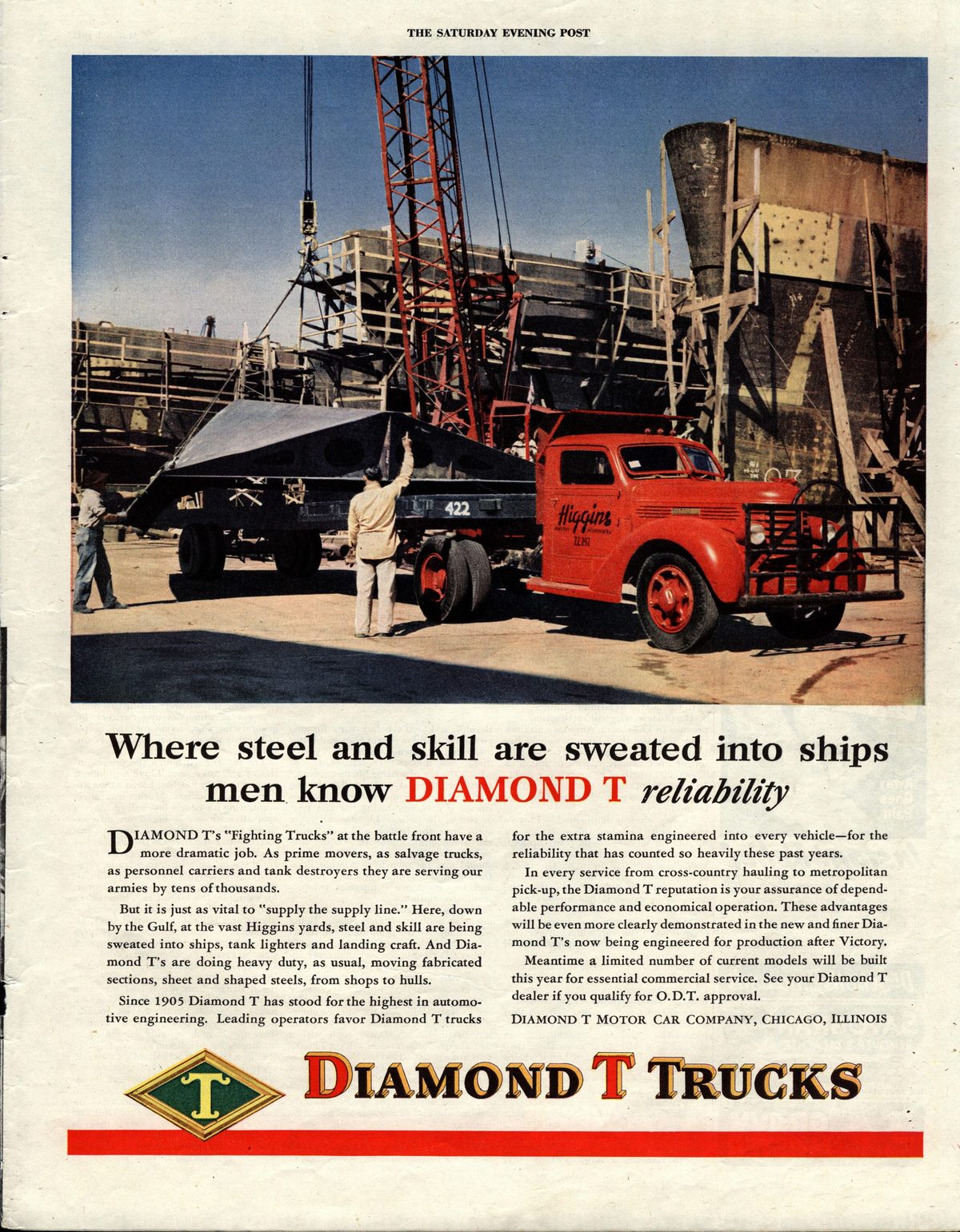 1945 Diamond T Trucks of Chicago, Illinois Collectible Advertisement: Higgins Boat Yards