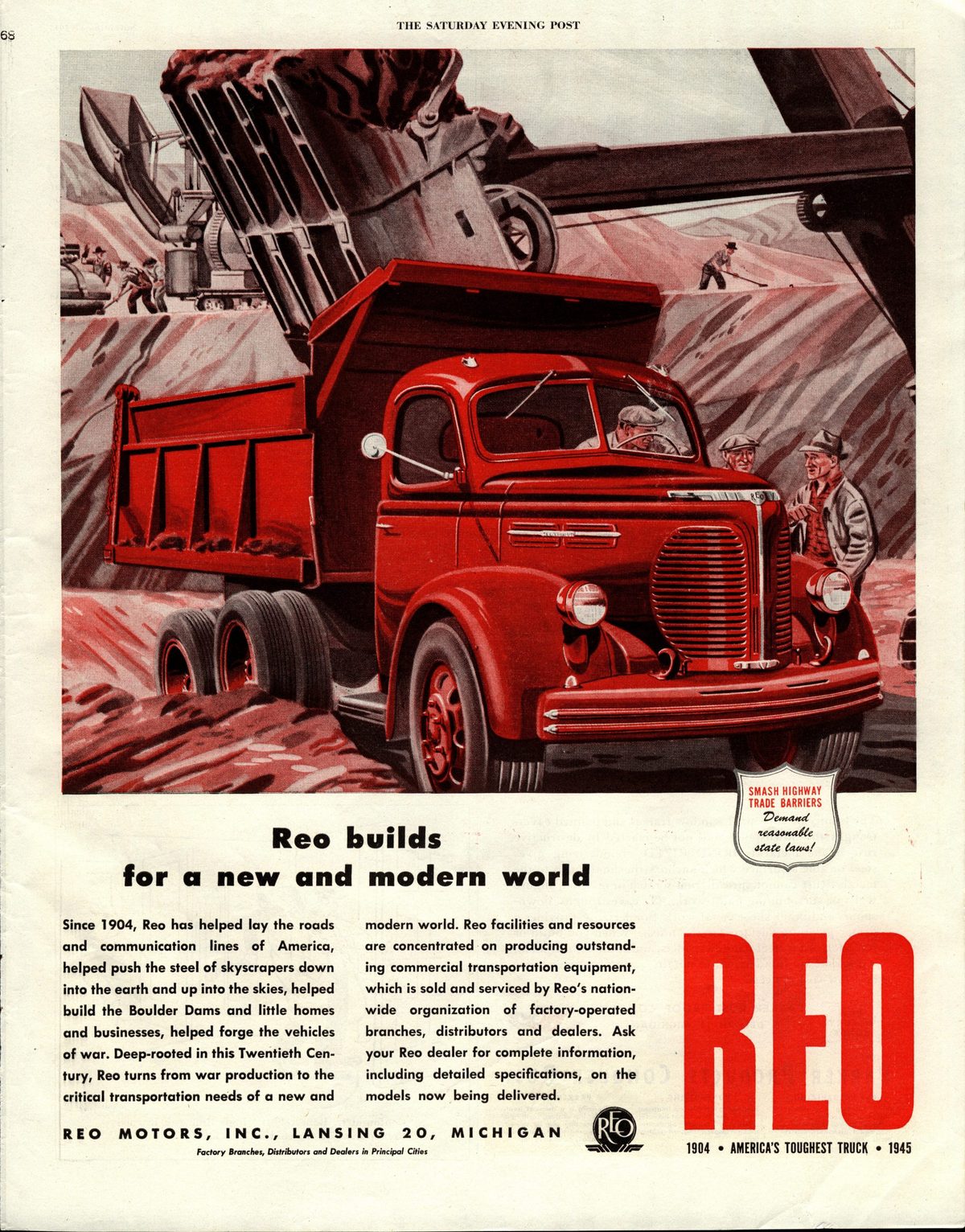 1945 REO Tandem Dump Truck Collectible Advertisement: Lansing, Michigan