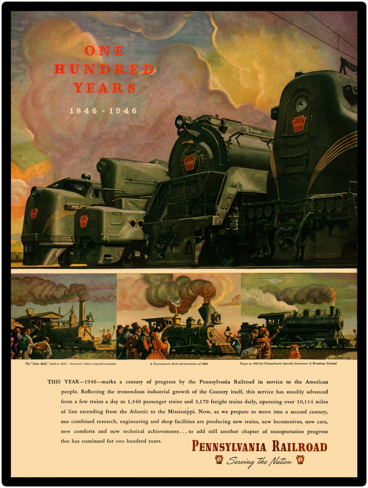 1946 Pennsylvania Railroad Collectible Metal Sign: 100th Anniversary