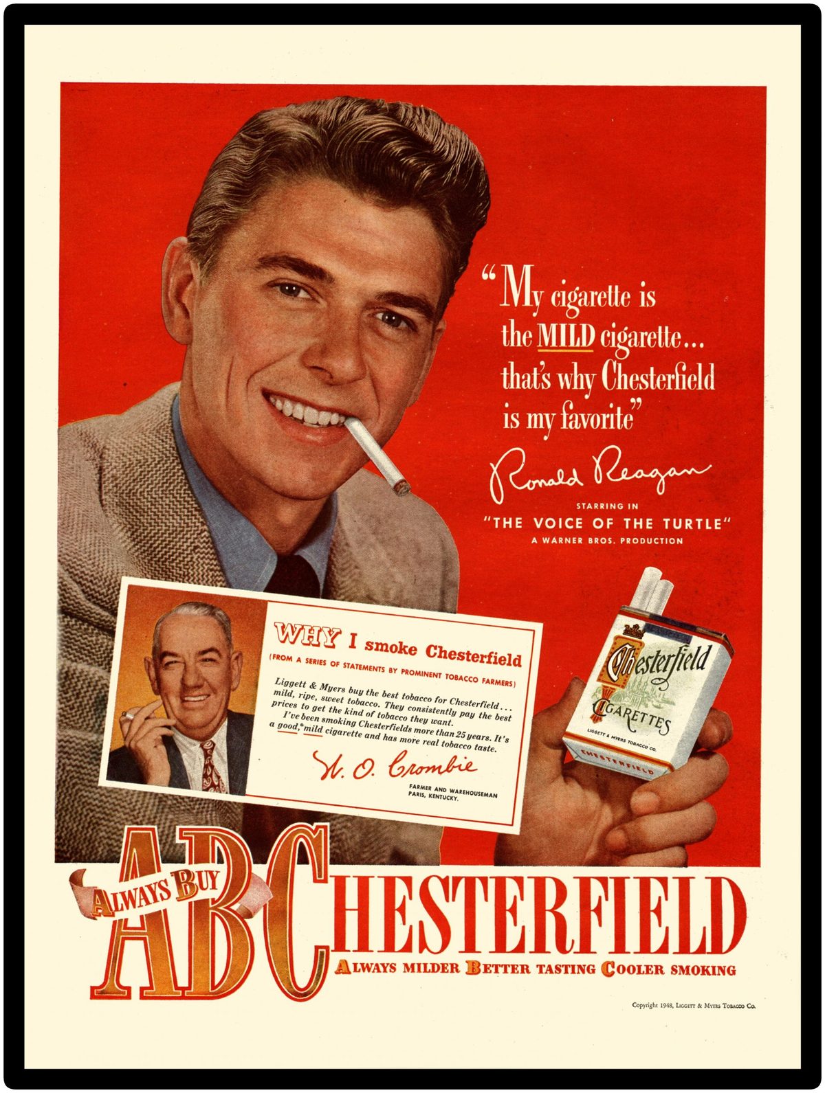 1948 Chesterfield Cigarettes Collectible New Metal Sign: Ronald Reagan Feature