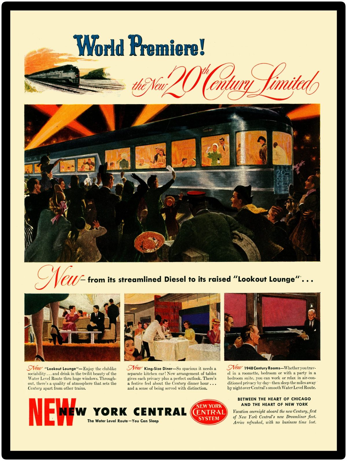 1948 New York Central Railroad Collectible New Metal Sign: 20th Century Limited