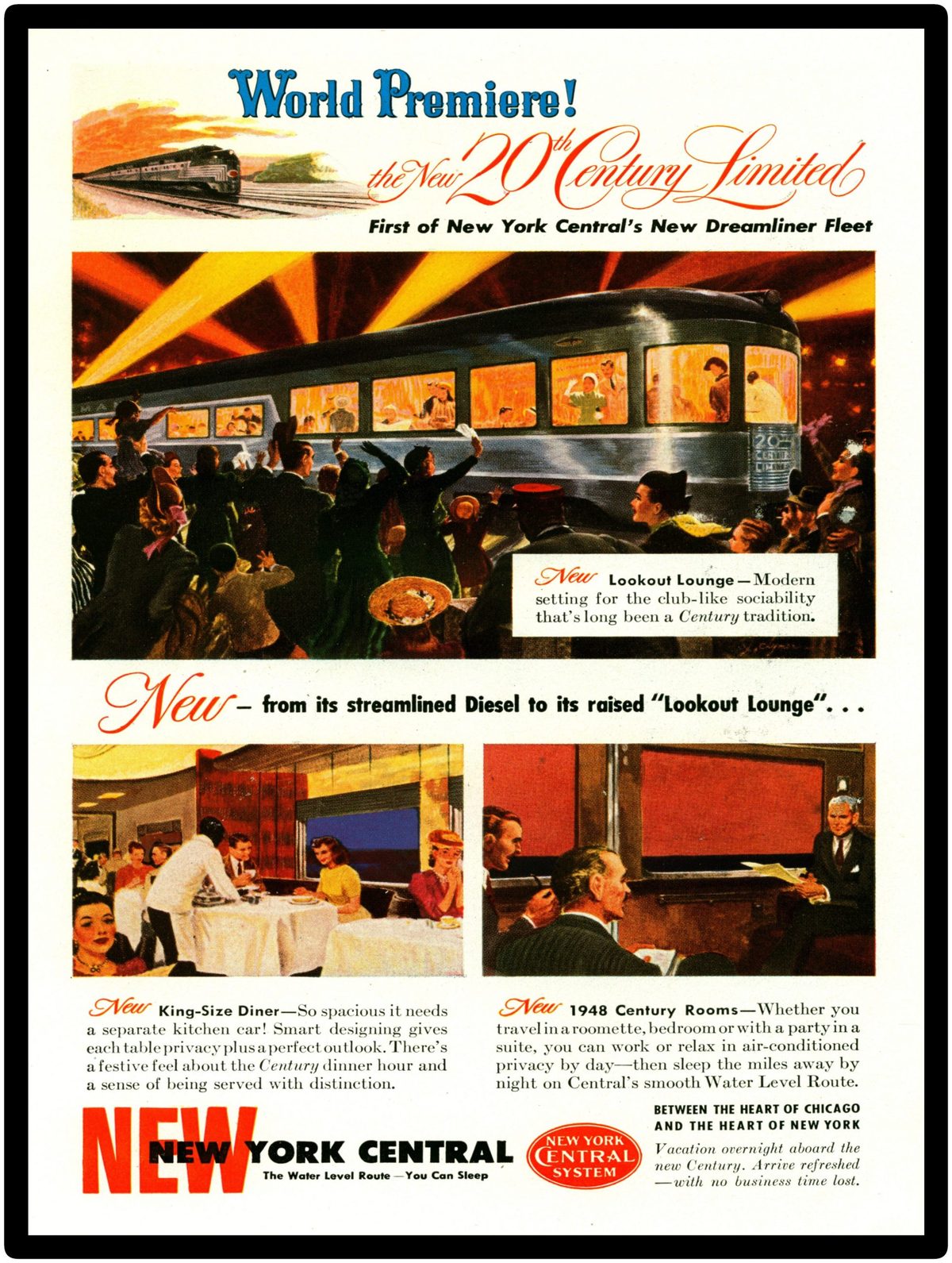1948 New York Central Railroad Collectible New Metal Sign: 20th Century Limited Dreamliner