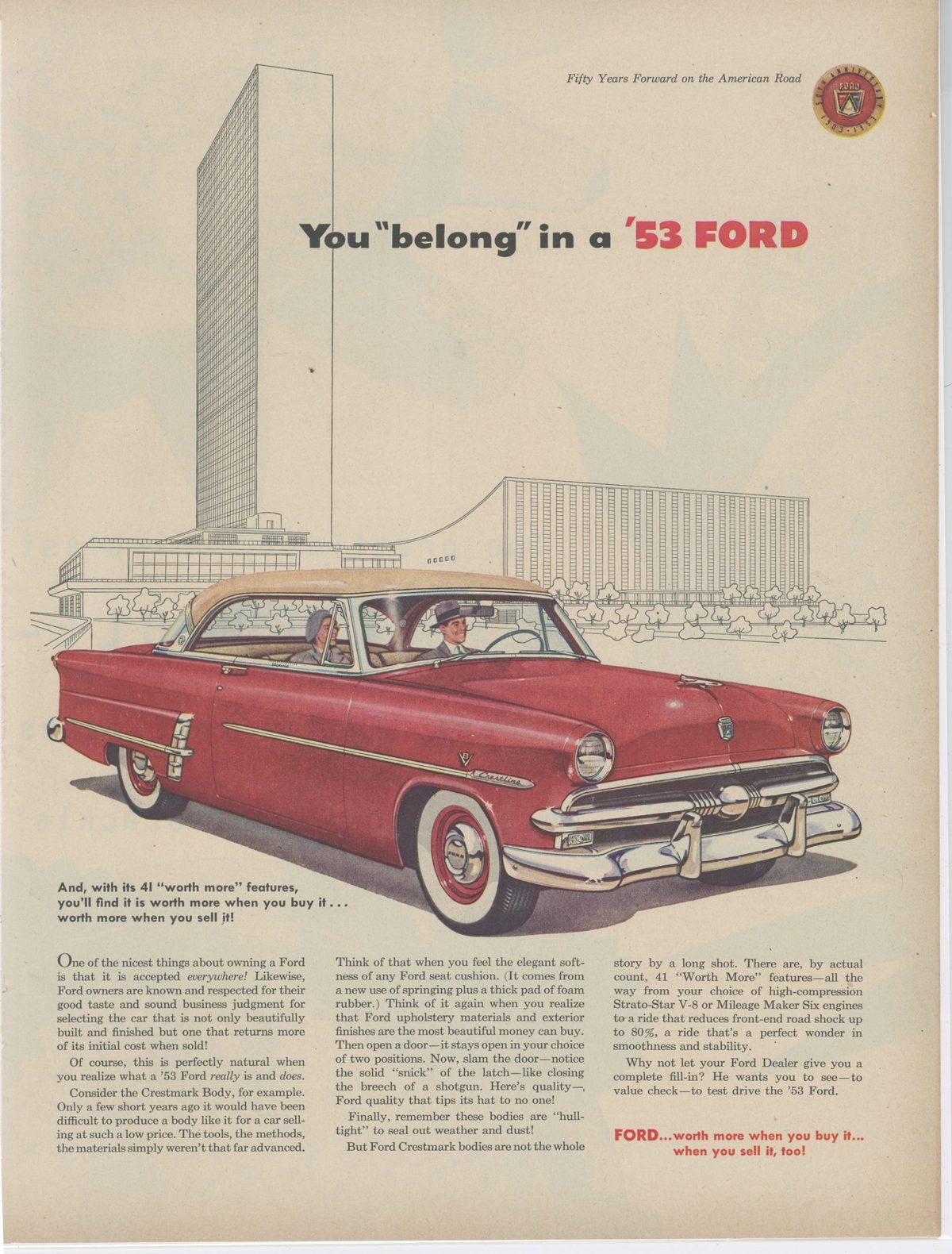 1953 Ford Crestline Collectible Print Advertisement, Sign