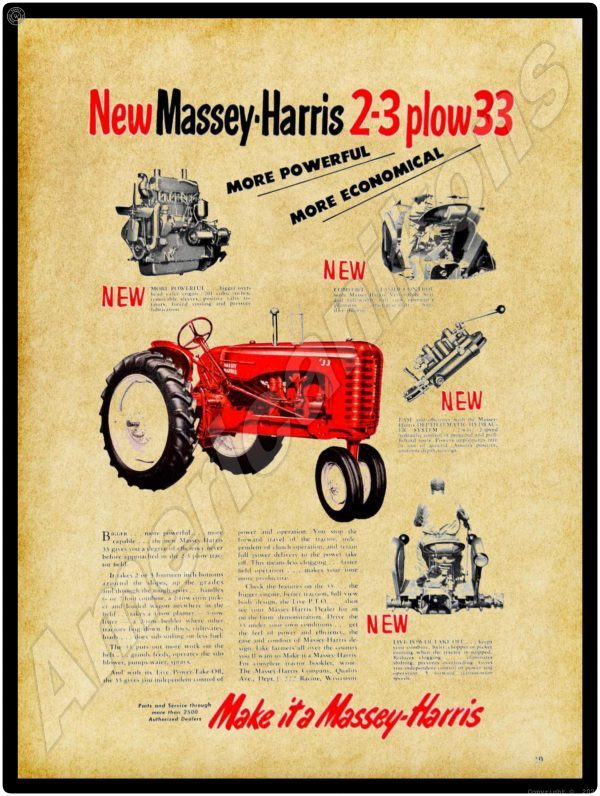 1953 Massey Harris Tractors Collectible Metal Sign: Model 33 – Racine, Wisconsin
