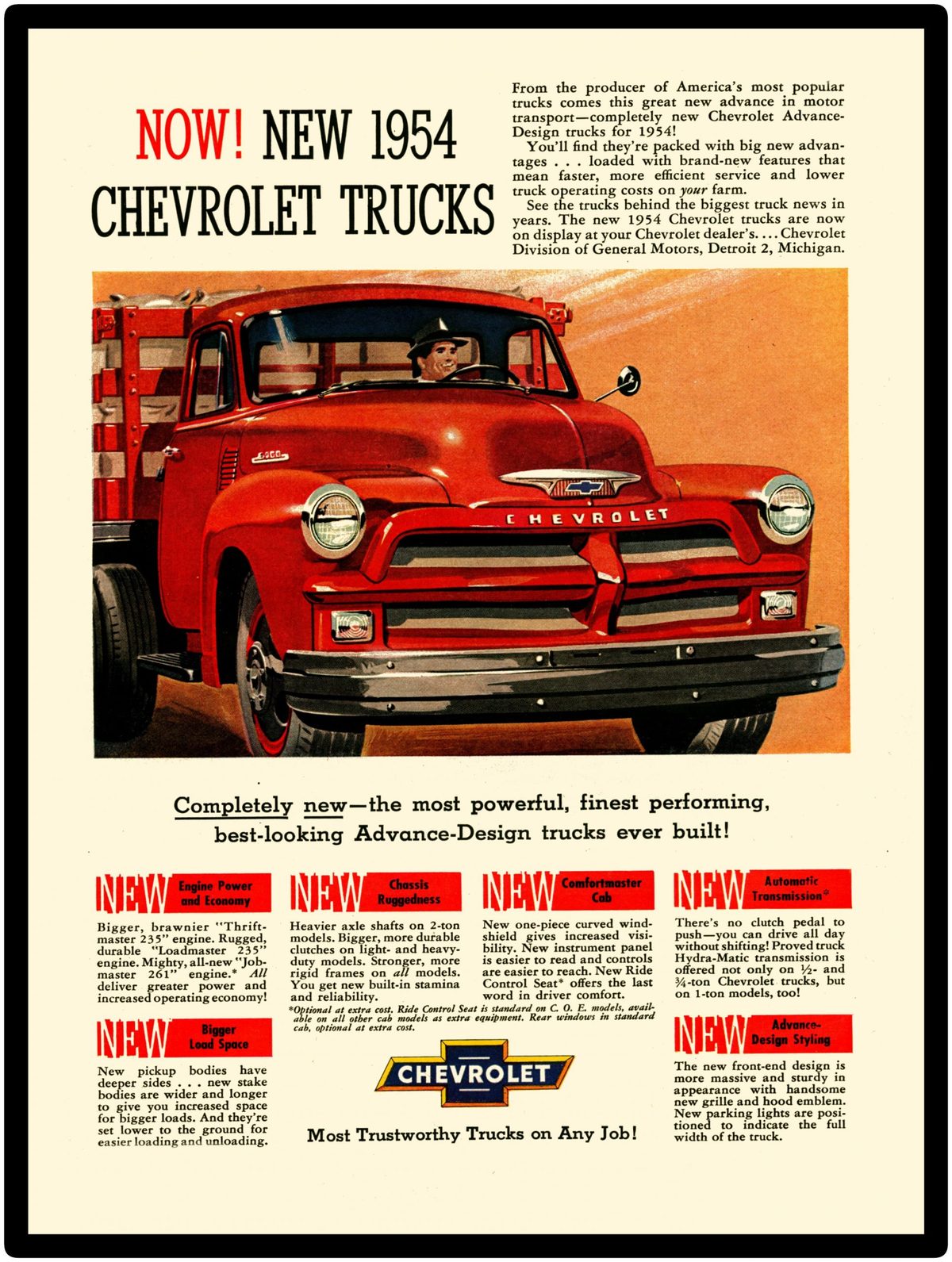 1954 Chevrolet Stake Bed Truck Collectible New Metal Sign: Loadmaster 235 Engine