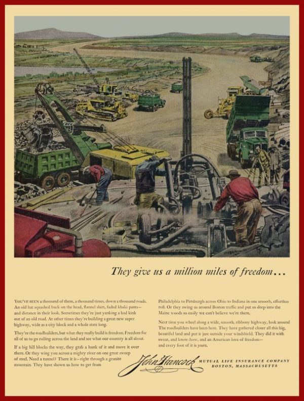 1956 John Hancock Insurance Collectible NEW Metal Sign: Road Builder Theme