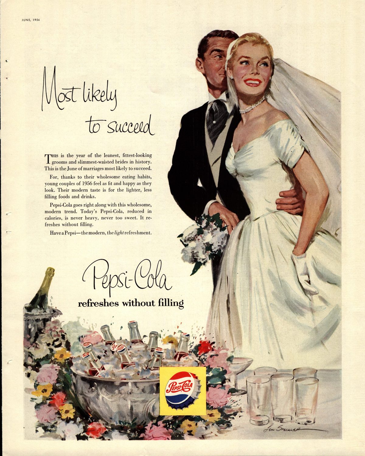 1956 Pepsi Cola Collectible Advertisement: Bridal, Wedding Theme