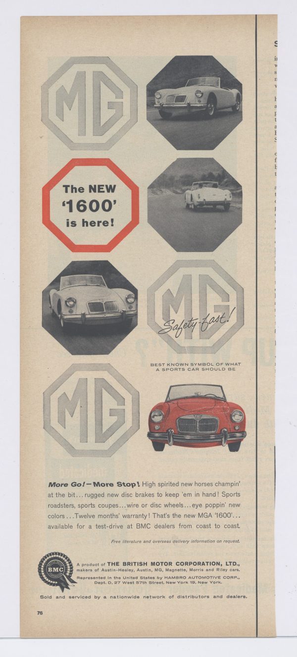 1959 MG 1600 Sports Car Collectible Advertisement: British Motor Corporation