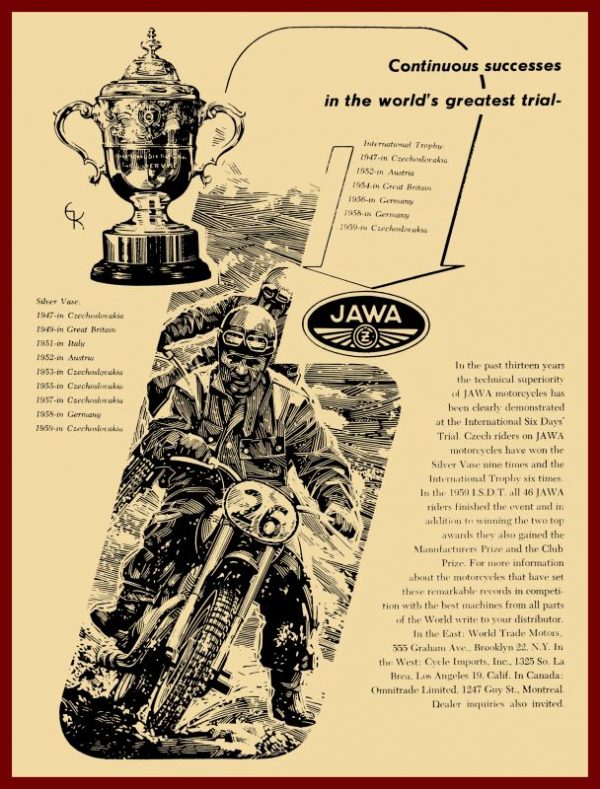 1960 JAWA Motorcycles Collectible NEW Metal Sign: “Continuous Success!”