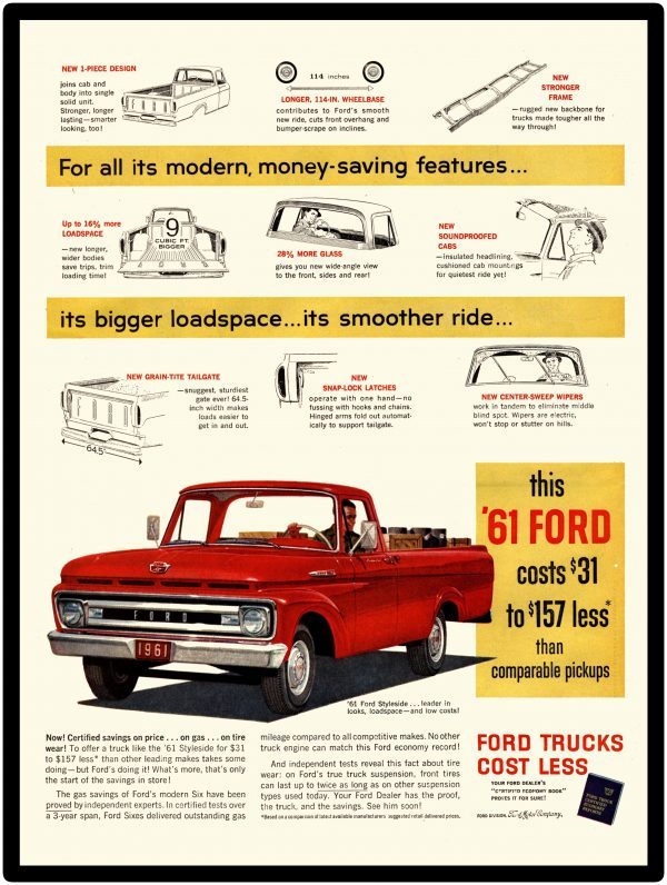 Tags: 1961 ford pickup truck, collectible, f100, metal sign, styleside