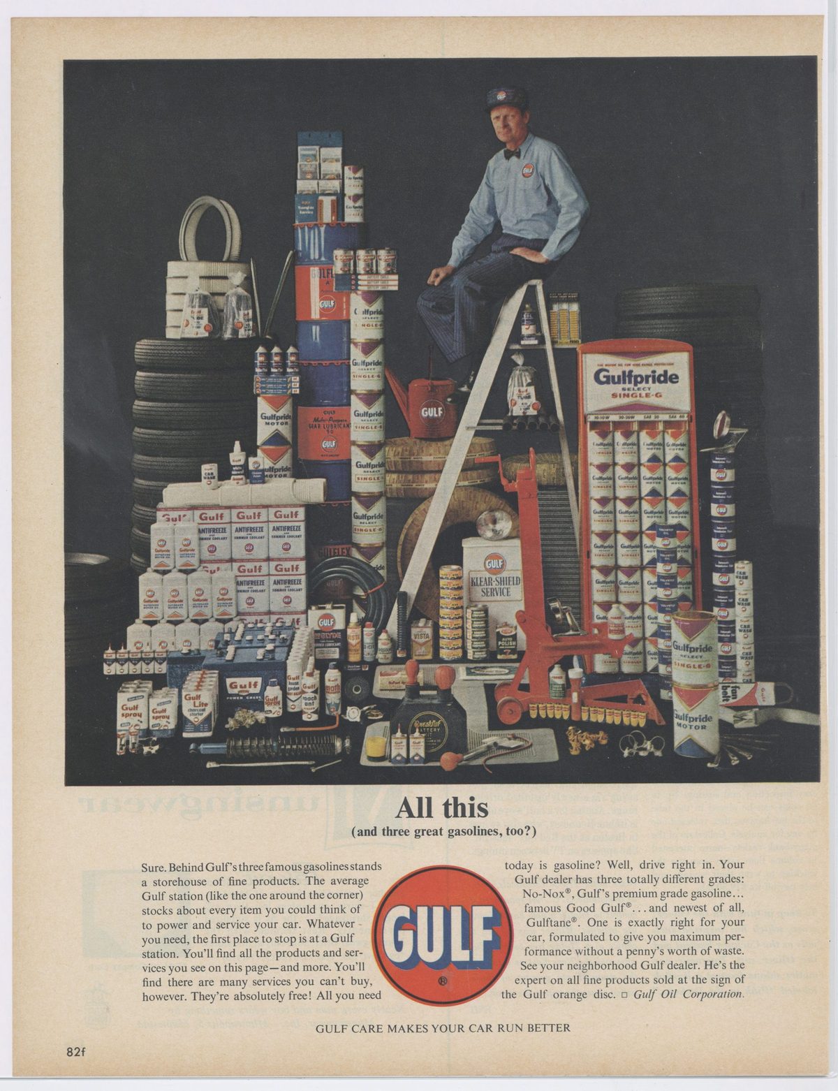 1962 Gulf Oil Collectible Advertisement: Gulf Products on Display