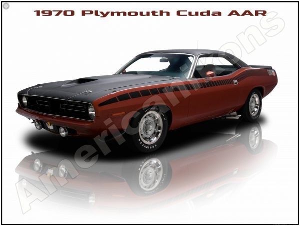 1970 Plymouth Cuda AAR Collectible Metal Sign: Sleek Black on Bronze