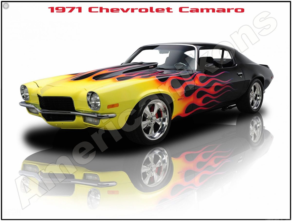 1971 Chevrolet Camaro Collectible Metal Sign: Custom Flamed Hot Rod