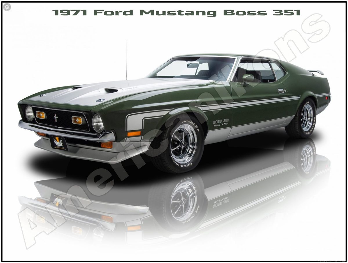 Tags: 1971 ford mustang, boss 351, collectible, metal sign