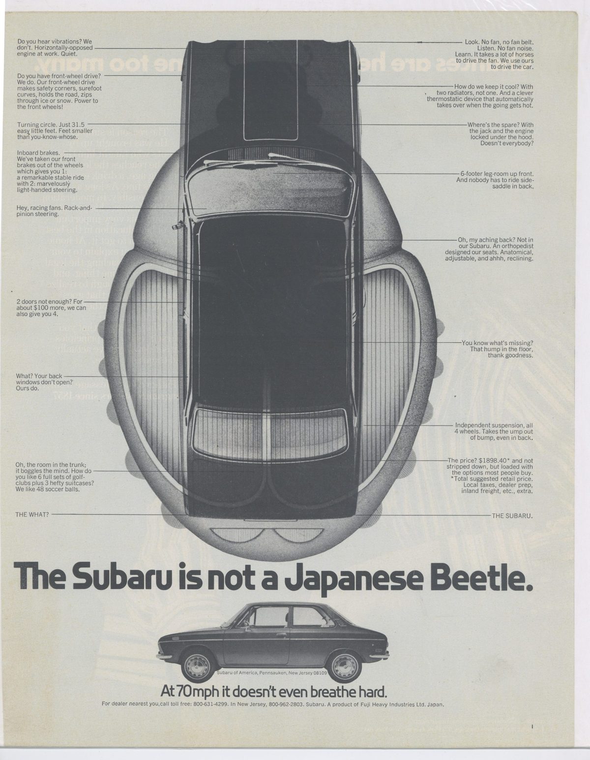 1971 Subaru Collectible Auto Advertisement: Not a Japanese Beetle