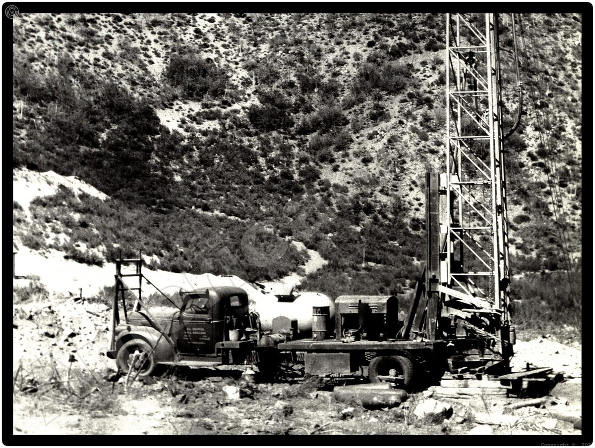 International Trucks Collectible Metal Sign: Vintage Well Drilling Flat Bed Outfit
