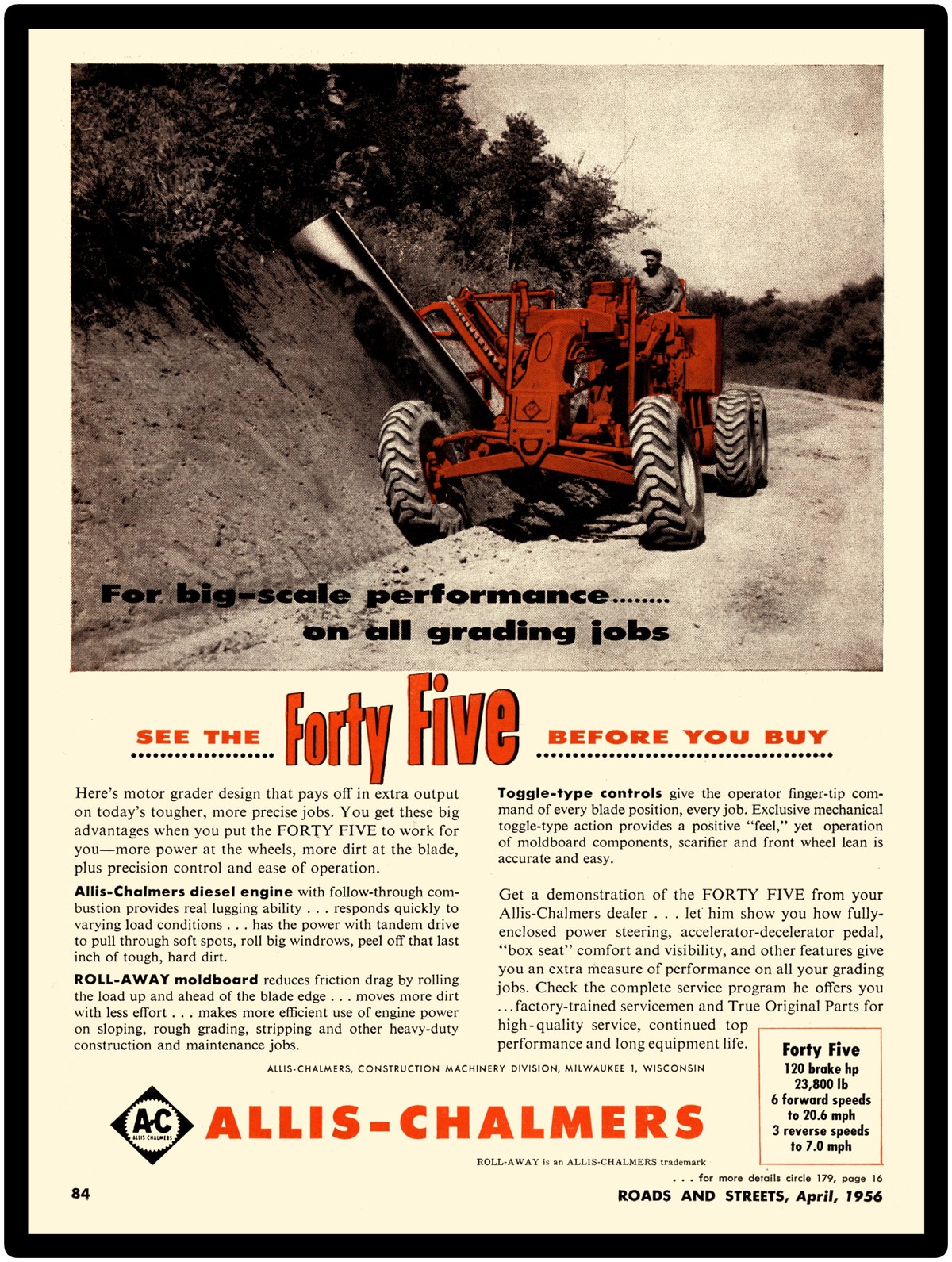 Tags: 45, allis chalmers construction equipment, collectible, metal sign, model forty five, motor grader