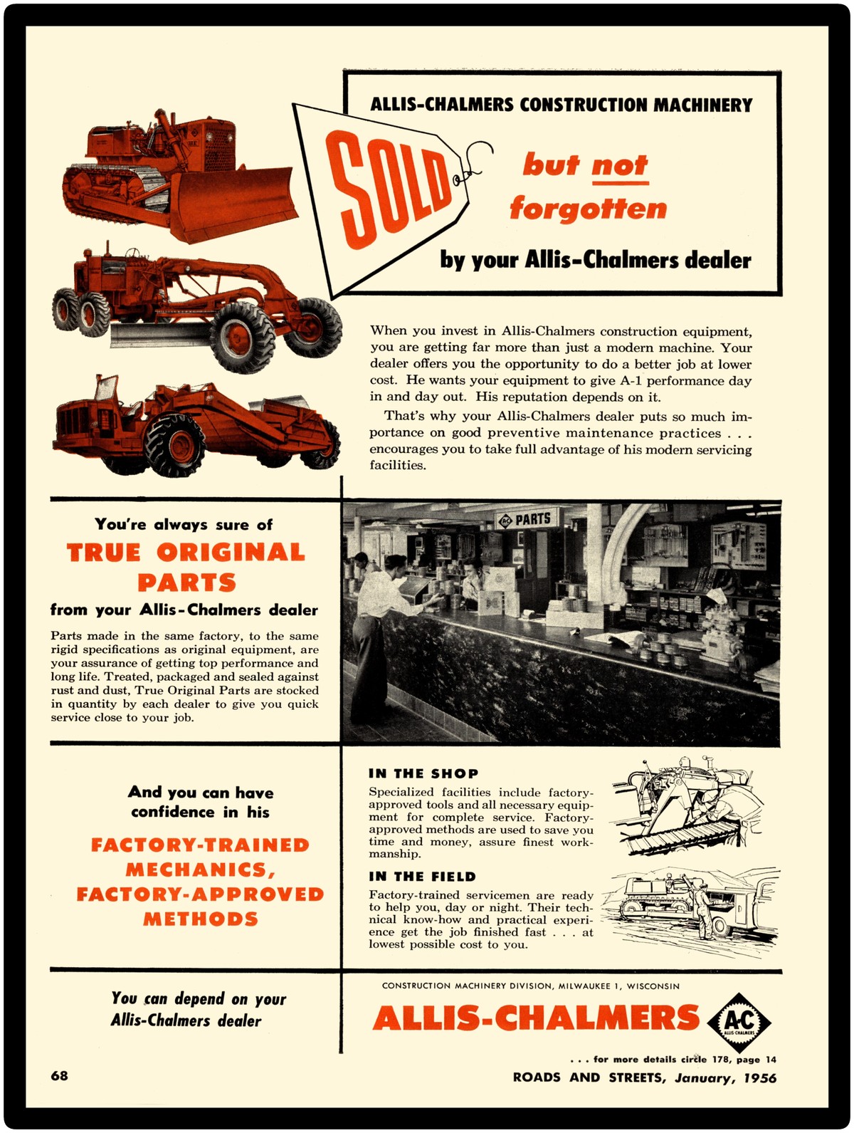 Allis Chalmers Construction Machinery Parts & Service Collectible New Metal Sign, Tractors, Motor Graders
