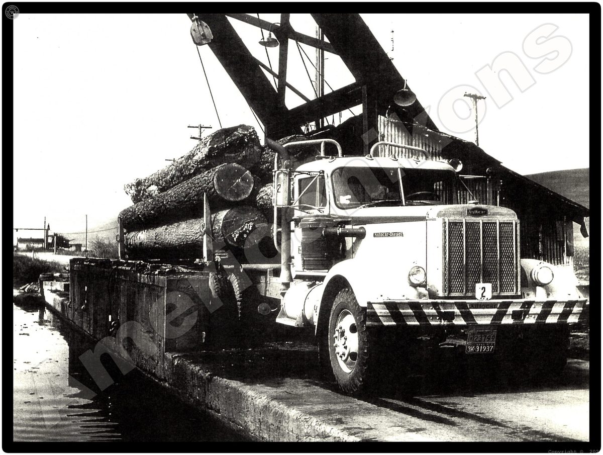 Autocar Trucks Collectible Metal Sign: Log Hauler at the Docks