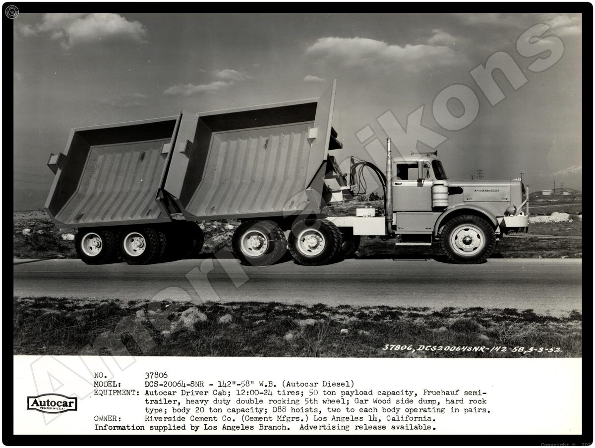 Autocar Trucks Collectible Metal Sign: With 50 Ton Fruehauf Dump Trailer, 1952