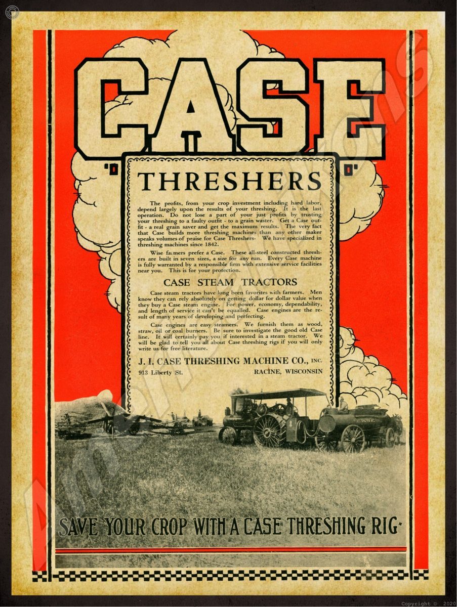 Case Steam Tractors & Threshers Collectible Metal Sign: Racine, Wisconsin