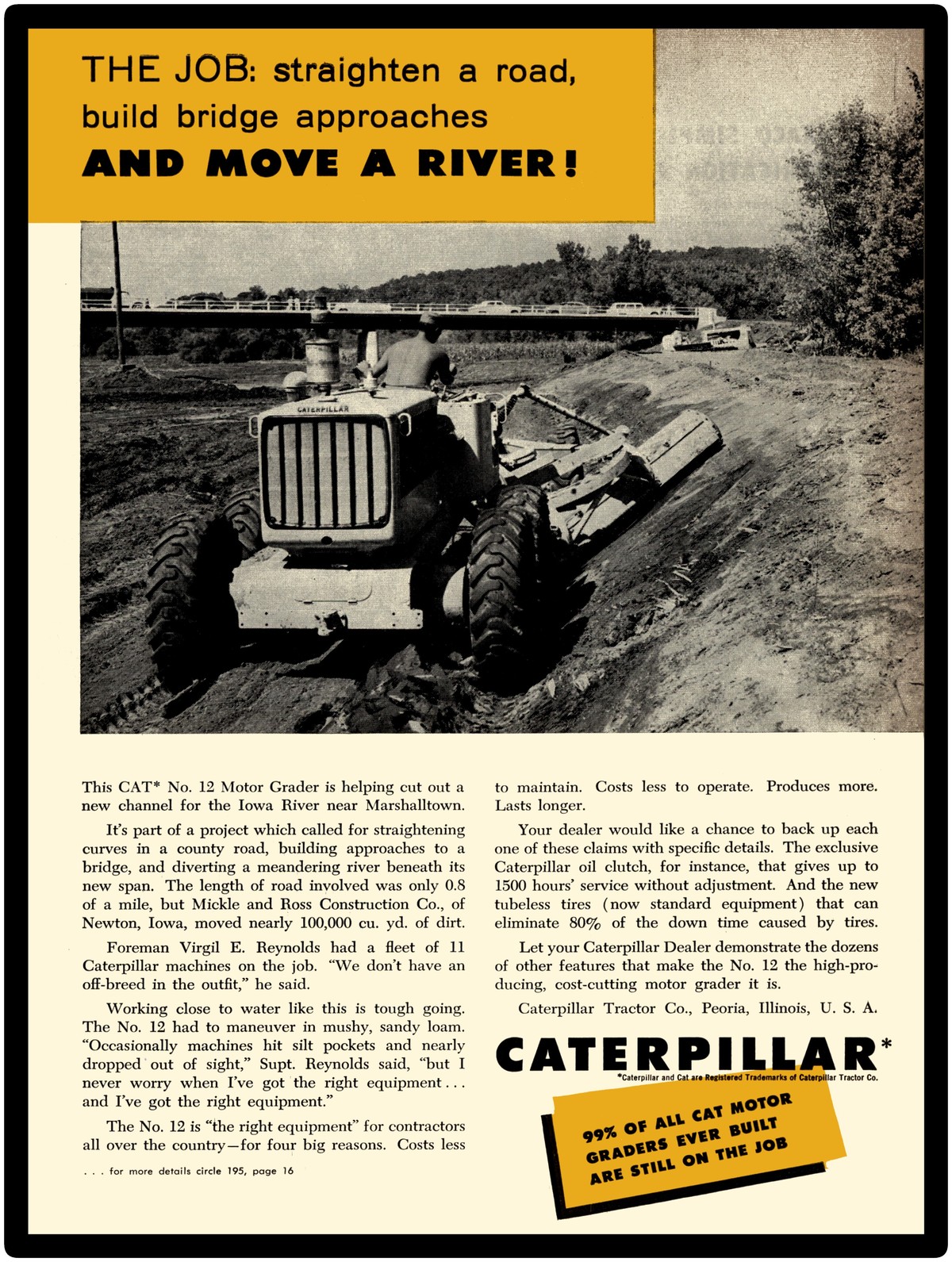 Caterpillar Equipment 1956 Collectible New Metal Sign: Cat No. 12 Motor Grader in Marshalltown, Iowa
