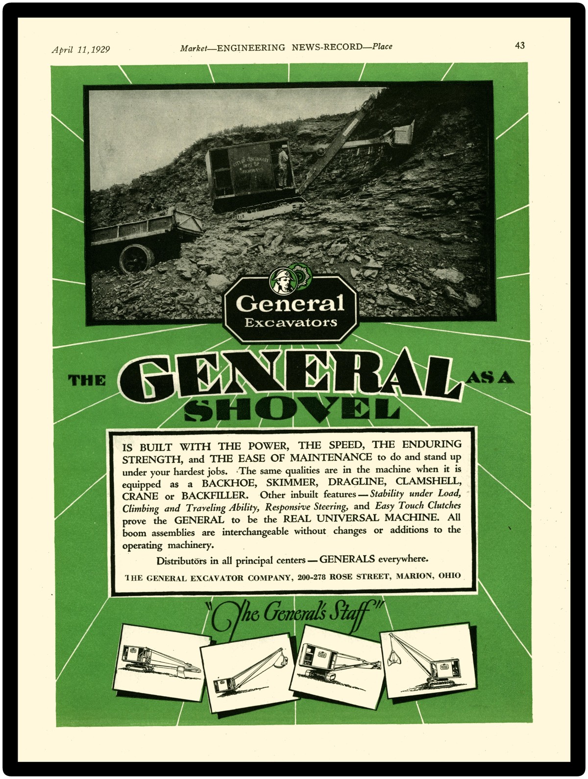 Collectible 1929 General Excavator Company Vintage Look New Metal Sign: Marion, Ohio Big Gun