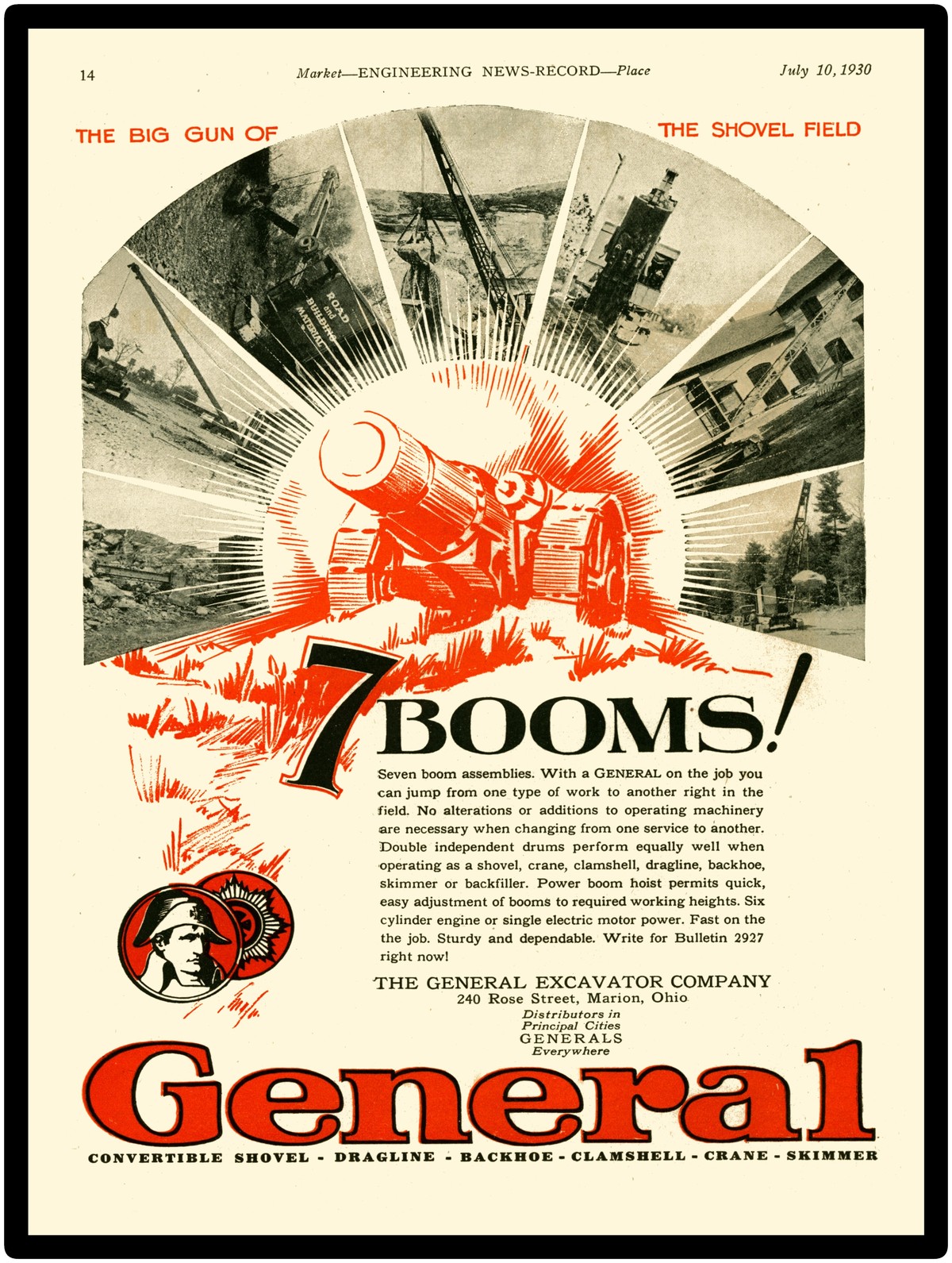 Collectible 1930 General Excavator Company Vintage Look New Metal Sign: Marion, Ohio Big Gun