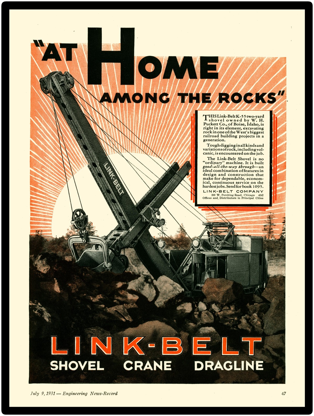 Collectible 1931 Link Belt K-55 Shovel New Metal Sign