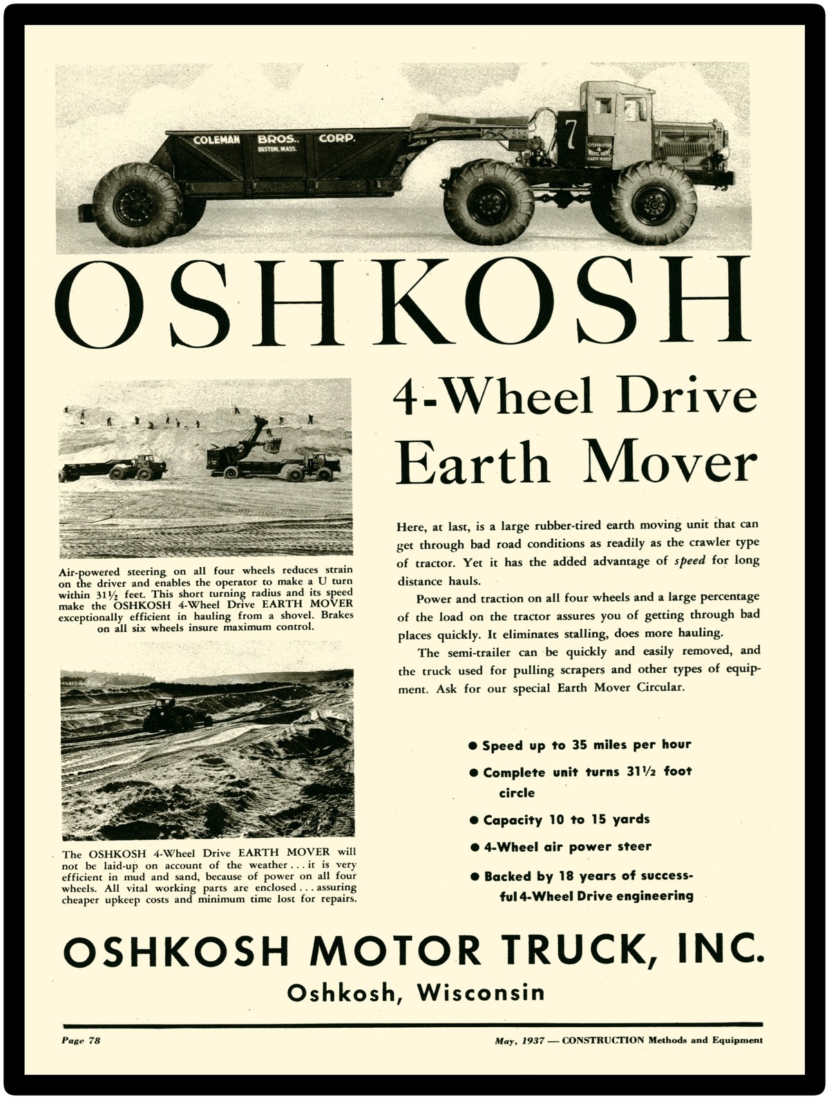 Collectible 1937 Oshkosh Motor Truck Company Earth Mover New Metal Sign