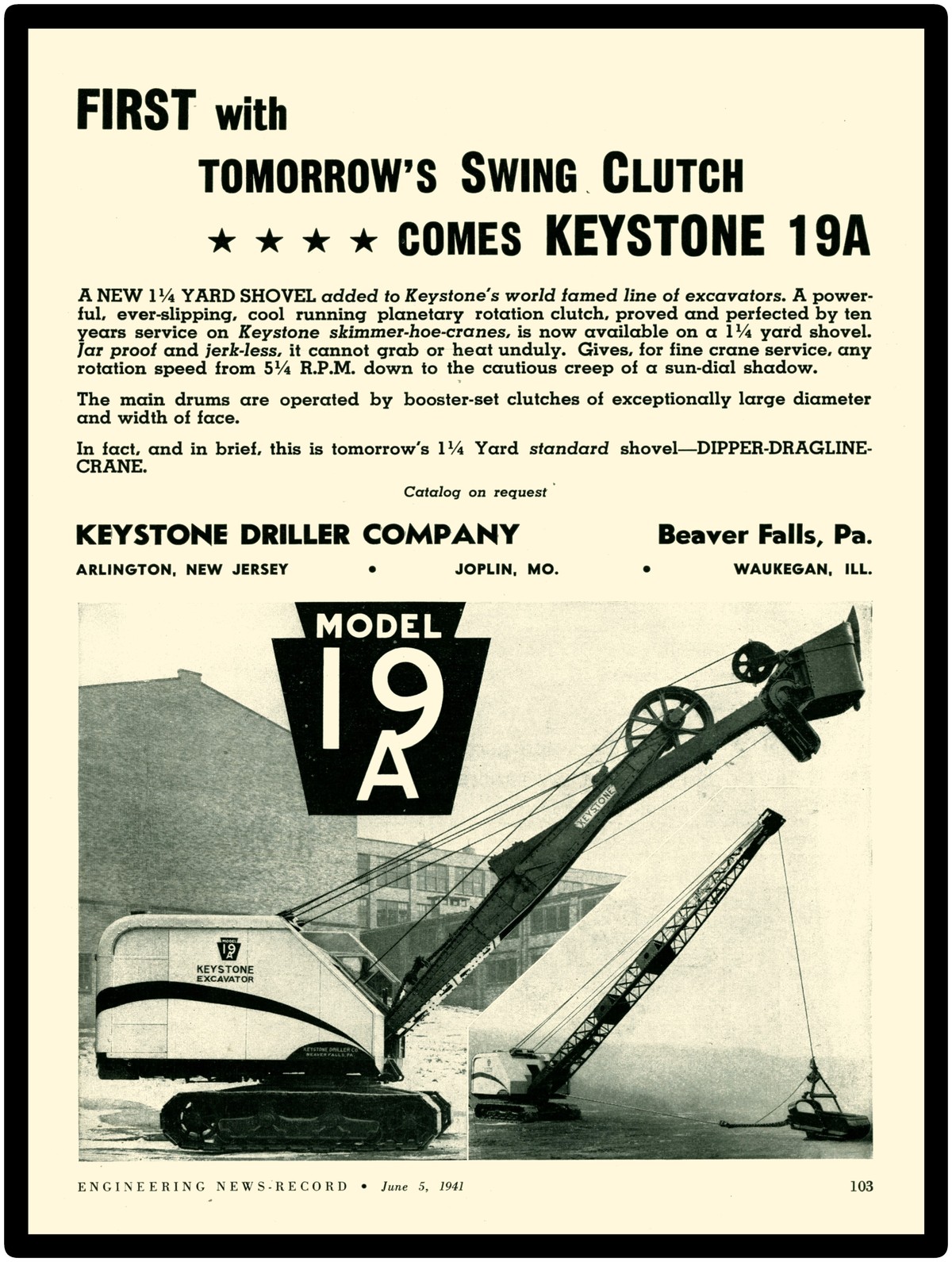 Collectible 1941 Keystone Model 19A Excavator New Metal Sign: Beaver Falls, PA