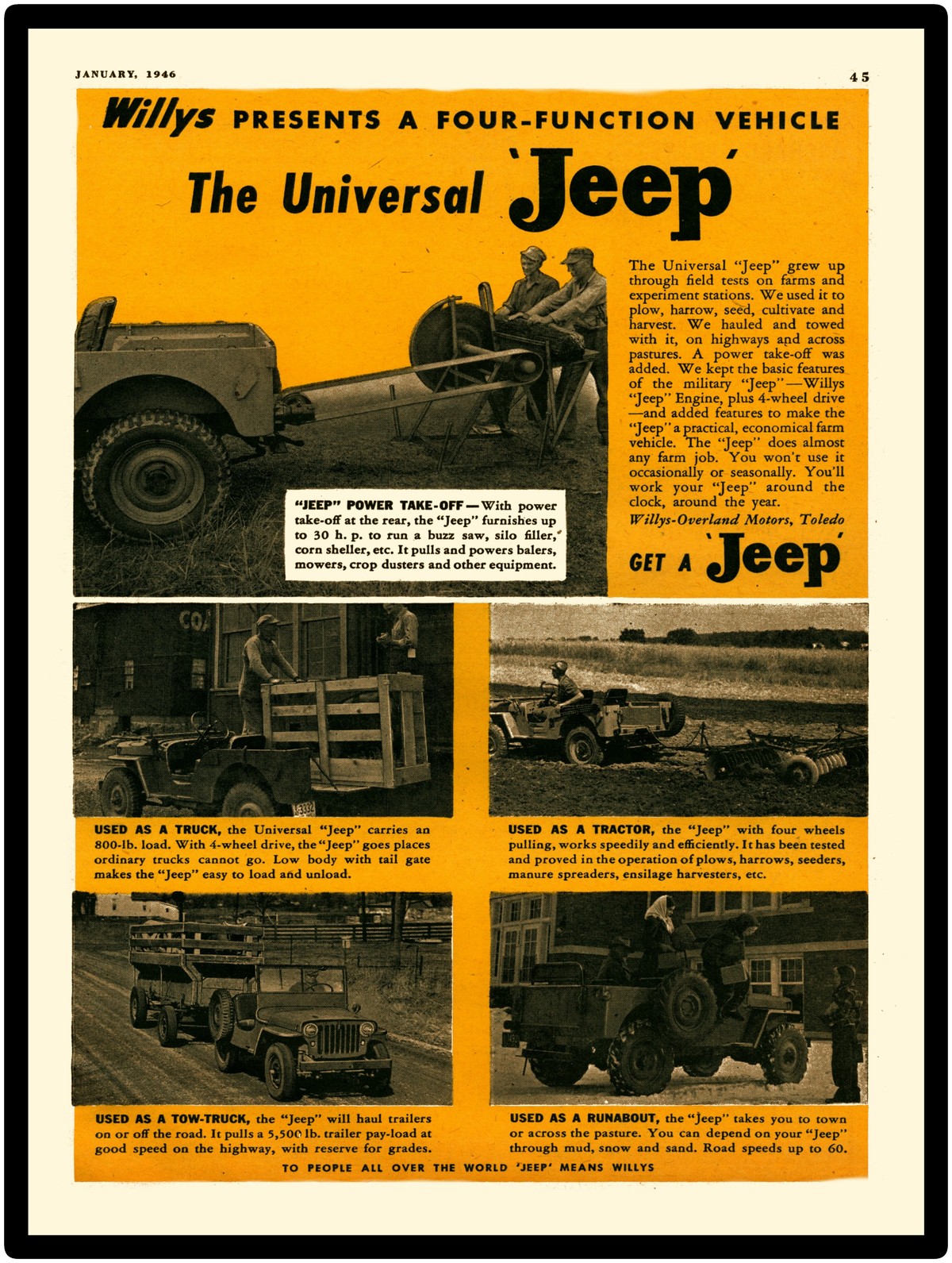 Collectible 1946 Willys Jeep With PTO New Metal Sign