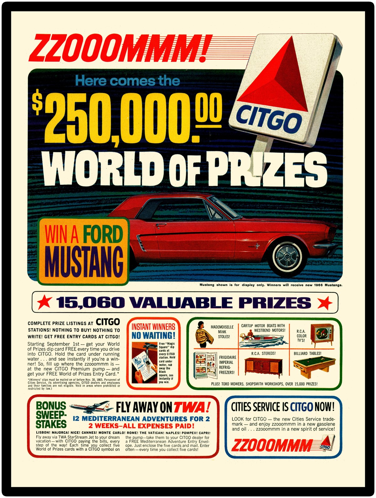 Collectible 1965 Ford Mustang New Metal Sign: Citgo Gasoline Contest Featured