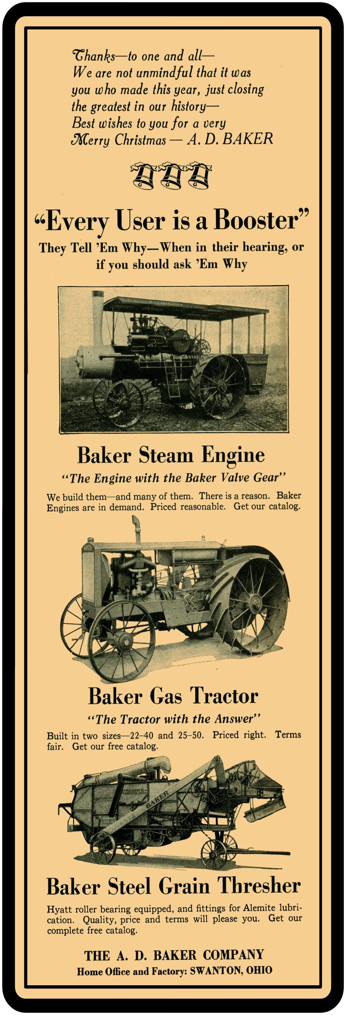 Collectible A. D. Baker Threshing Machinery New Metal Sign, Swanton, Ohio