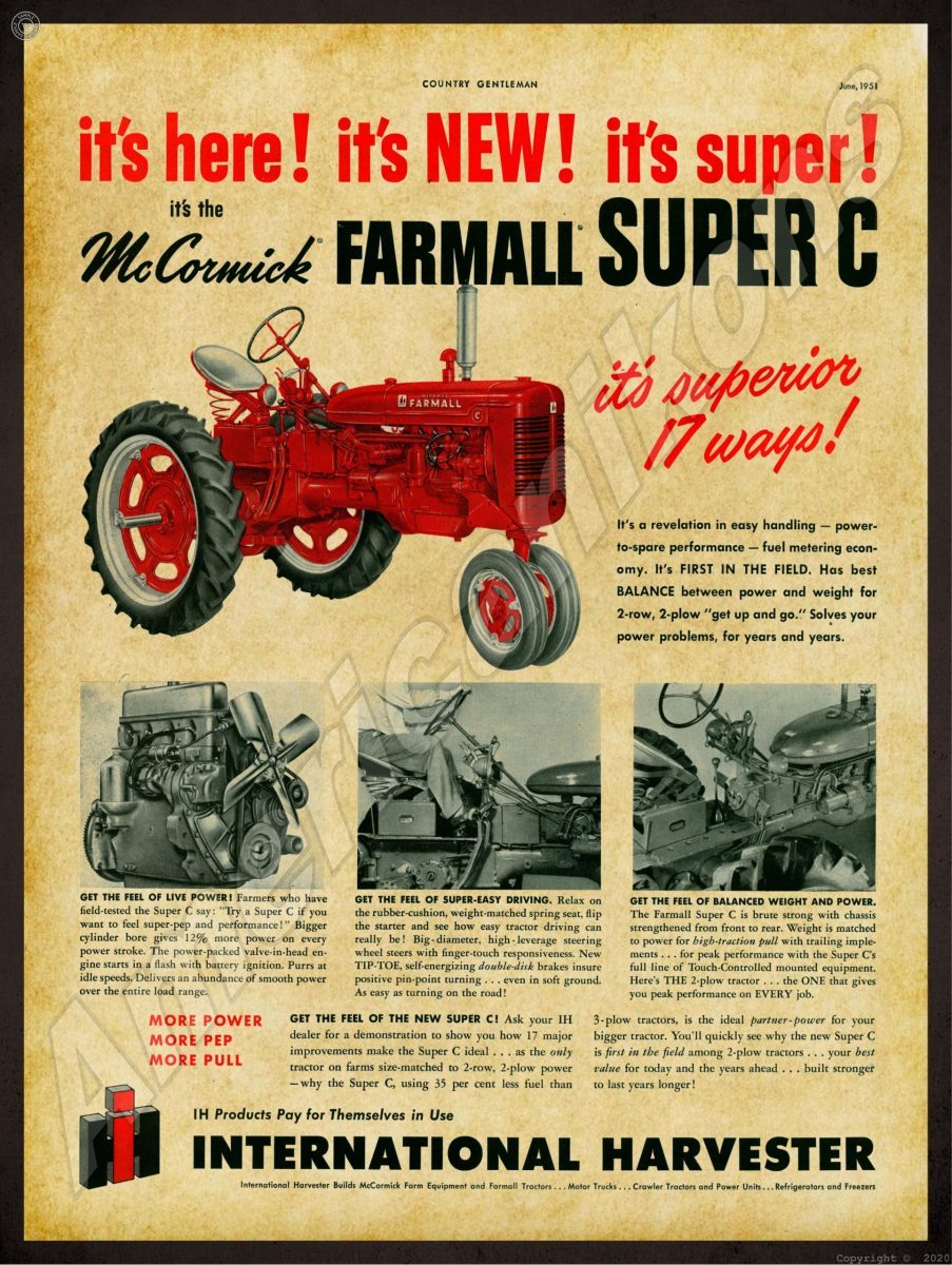 Farmall Super C Tractor Collectible Metal Sign: International Harvester – Chicago, Illinois